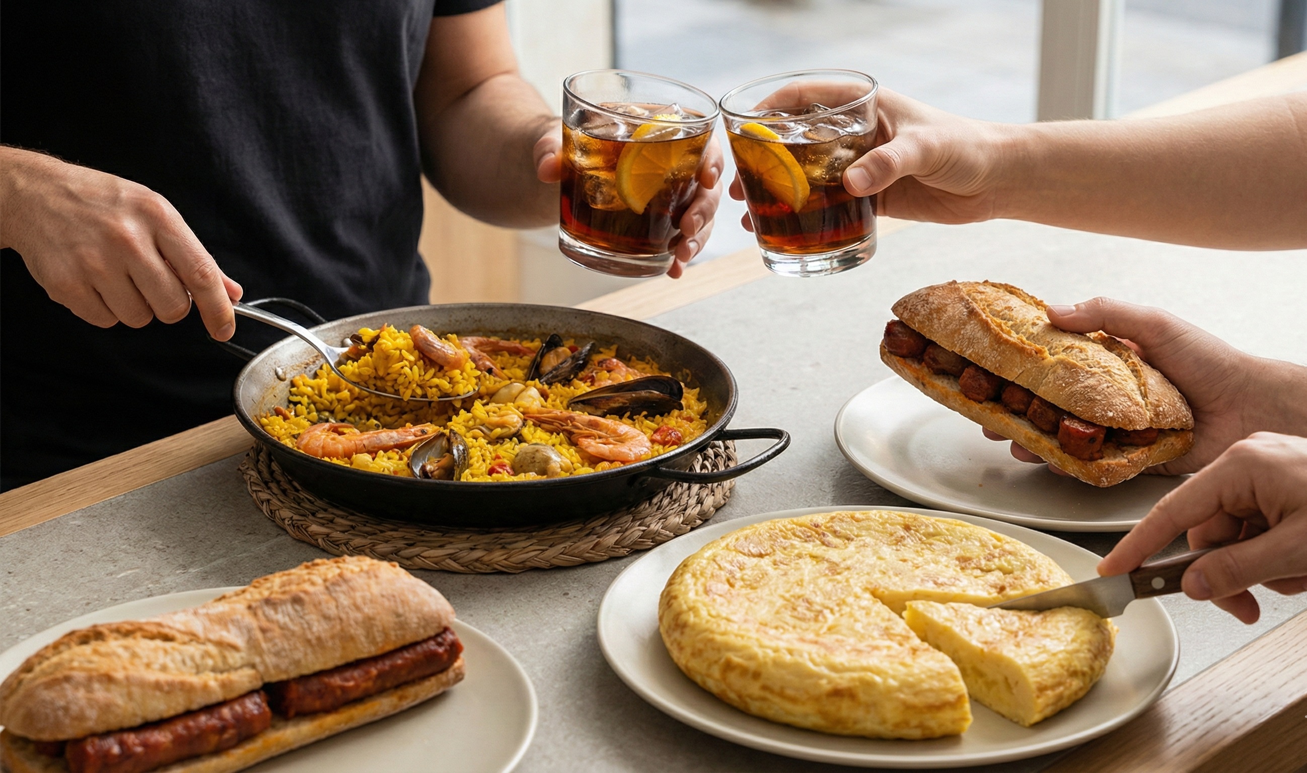 La barra de comida ofrecerá tortilla española, bocata de chistorra y paella, mientras que la barra de bebidas contará con sidra, vermut, vino y opciones sin alcohol.
